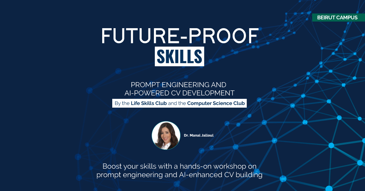 Future Proof Skills December 3–November 3, 2025 5:00 PM–6:00 PM AKSOB 904 Prompt engineering and AI powered CV developed